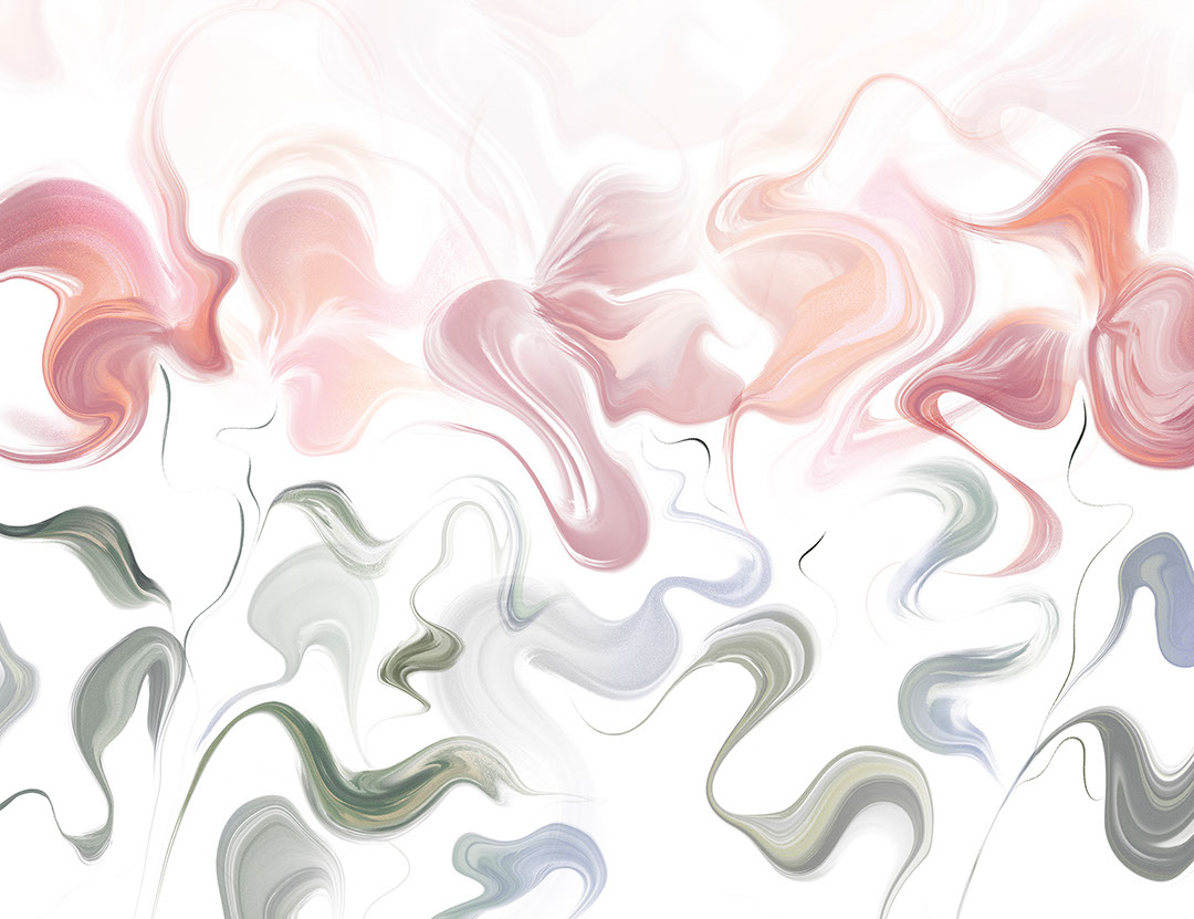 Wall mural abstract flowing floral forms in a soft light palette