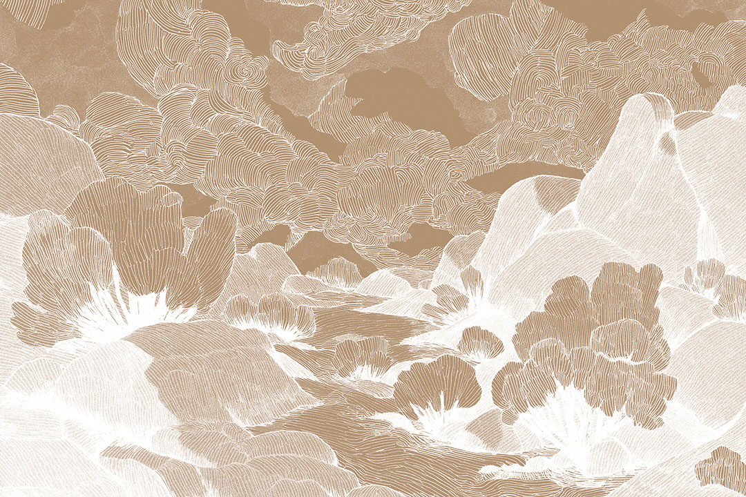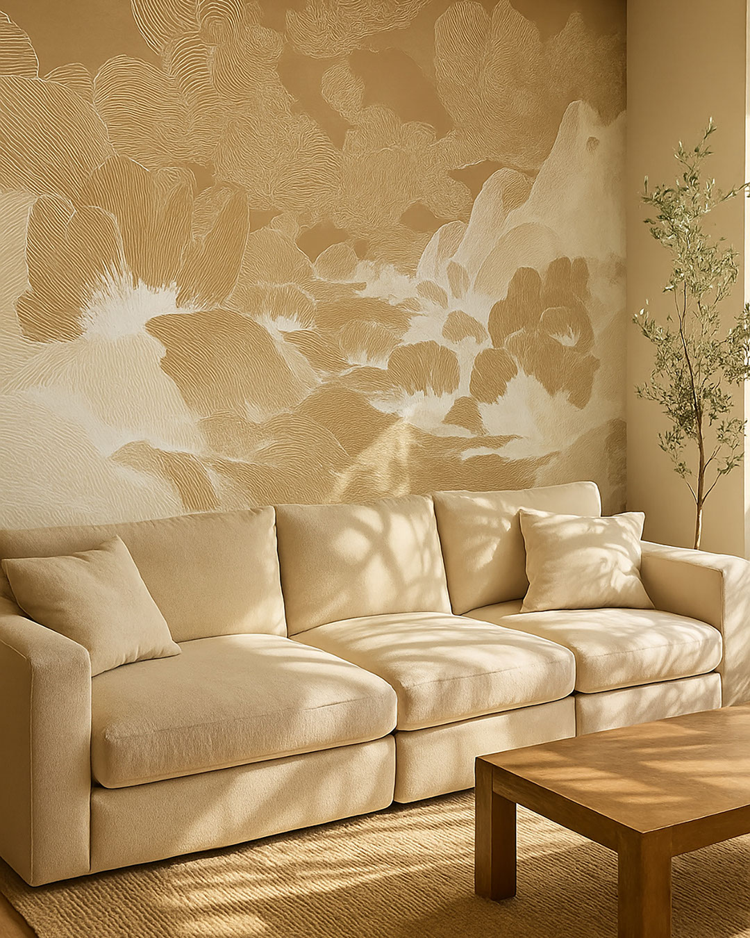 Dunora conveys a sense of calm through soft linework and a warm monochrome desert palette. The mural resembles an old illustration rendered in gentle graphic strokes. It brightens the interior and makes it feel more open and serene. Dunora is especially well-suited for bedrooms, living rooms and relaxation zones that benefit from a soft, quiet aesthetic. Subtle contrasting lines create a sense of movement without overwhelming the space. The mural pairs beautifully with light woods, natural materials and sandy linen textures. It is an ideal choice for interiors seeking harmony, tranquility and understated elegance.